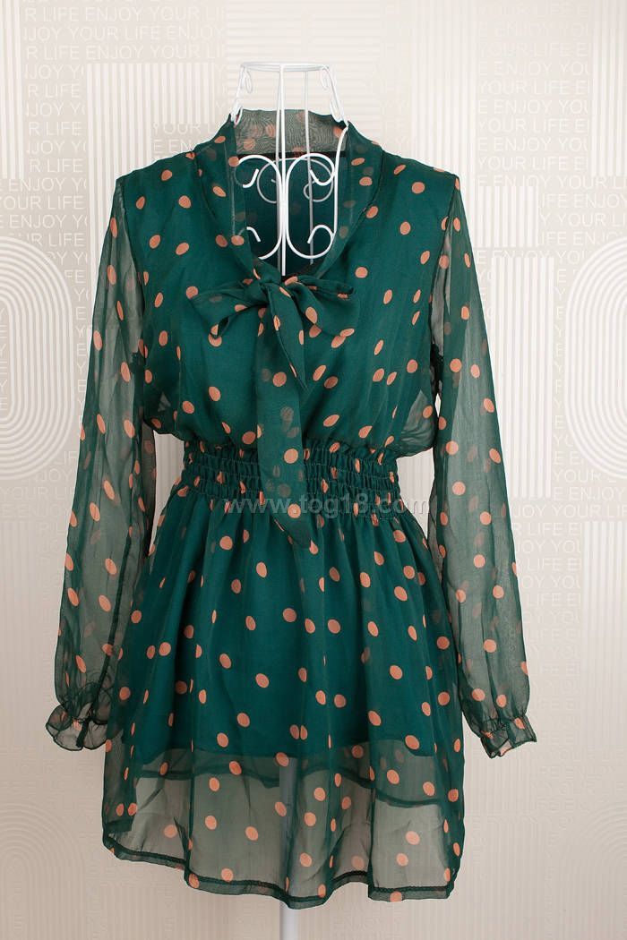 帶蝴蝶結 雪紡打底衫 雪紡波點連衣裙