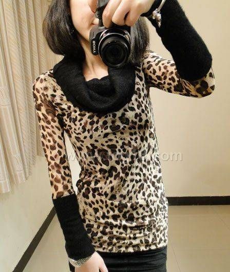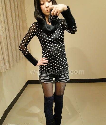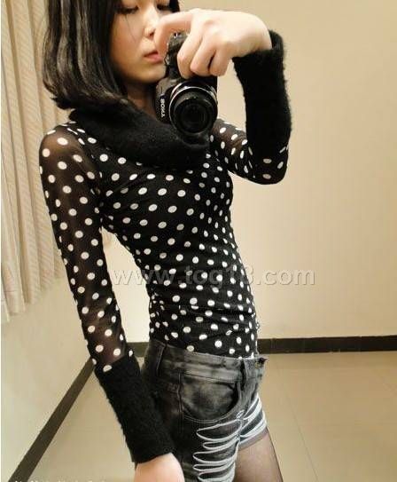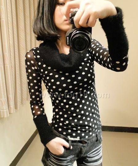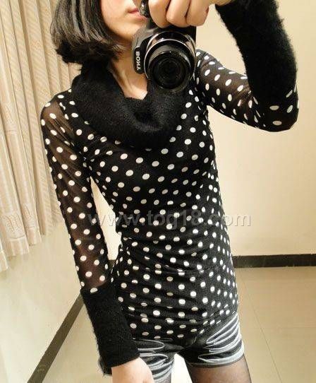 網紗蕾絲豹紋 圓點堆堆高領修身打底衫T