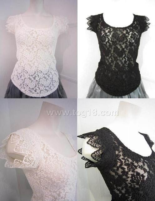 玫瑰花朵蕾絲衫鏤空短袖T恤