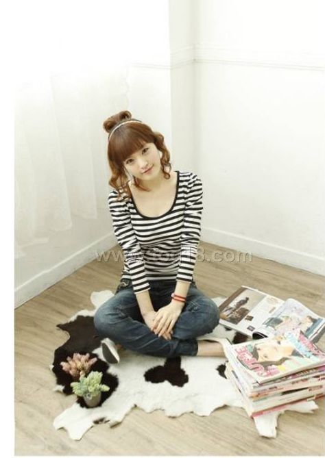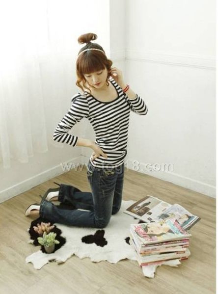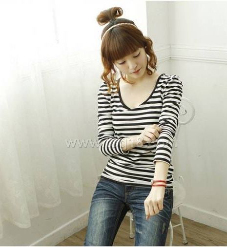韓版圓領長款甜美條紋打底衫長袖T恤