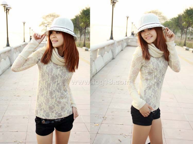 新款韓版 圍脖 蕾絲 T恤