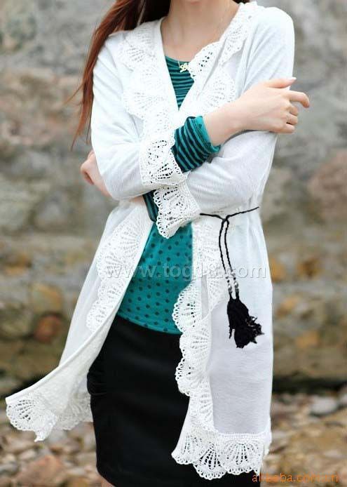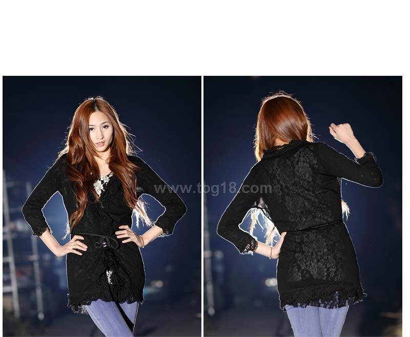 荷葉花邊氣質鏤空長款上衣(配腰帶)