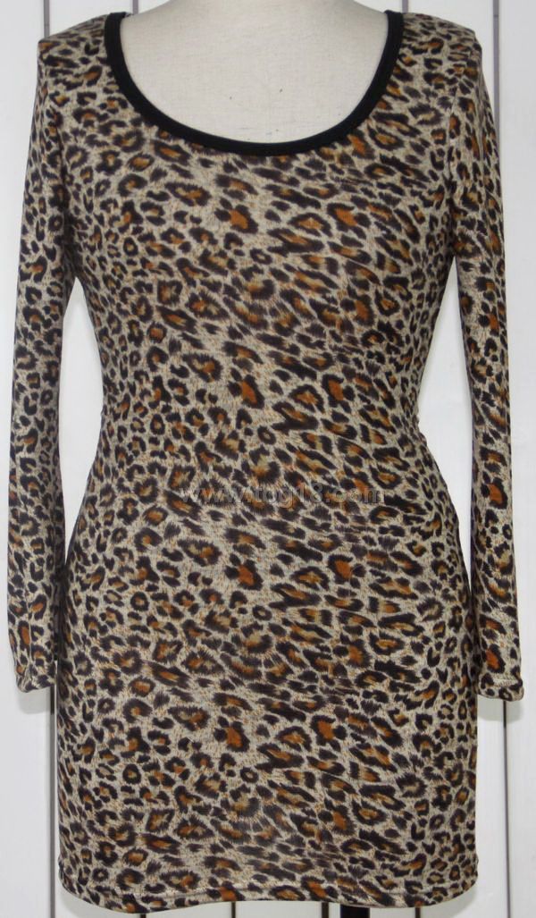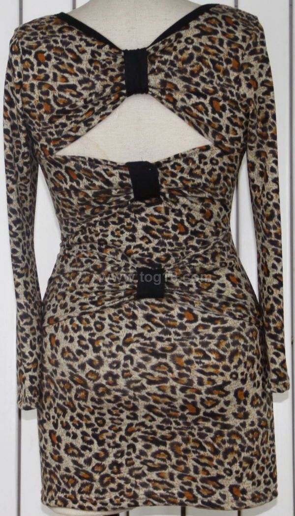 時尚豹紋露背圓領長款洋裝