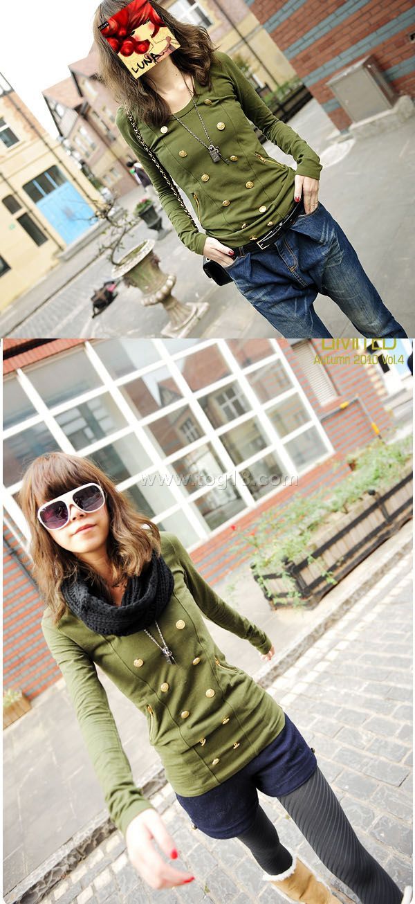 關於搭配:搭配上,沒的說,無論內搭,還是穿外套裡。還是外穿。都是無可挑剔。無與倫比的魅力。超性感的。今年軍綠色大熱哦。軍裝風格大熱。所以怎麼也得來一件。