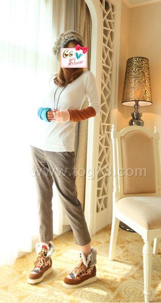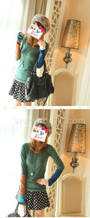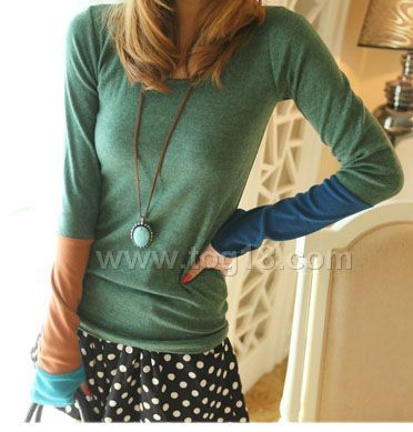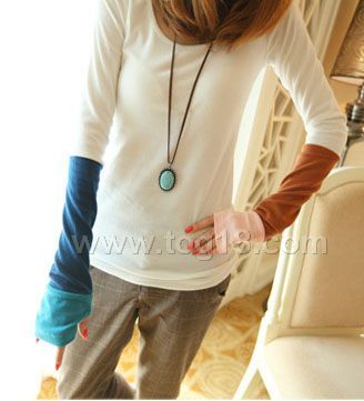 彩色拼袖拇指打底T