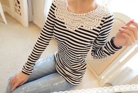 萬用手工鉤花大娃娃領可愛條紋內搭