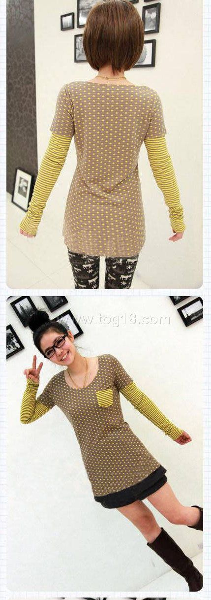 通過兩面的裁剪和拼接,打造了無敵的假兩件式T