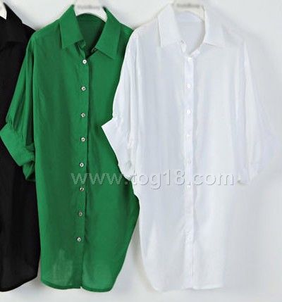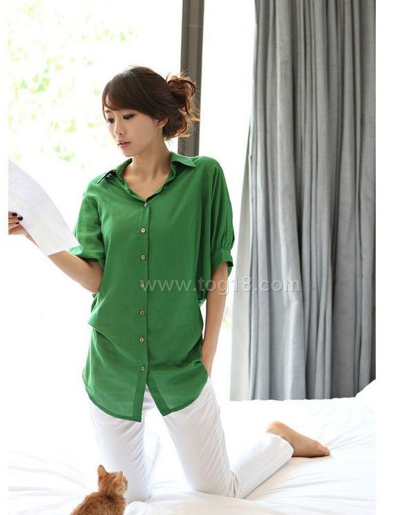 蝙蝠袖背扣收腰翻領襯衫