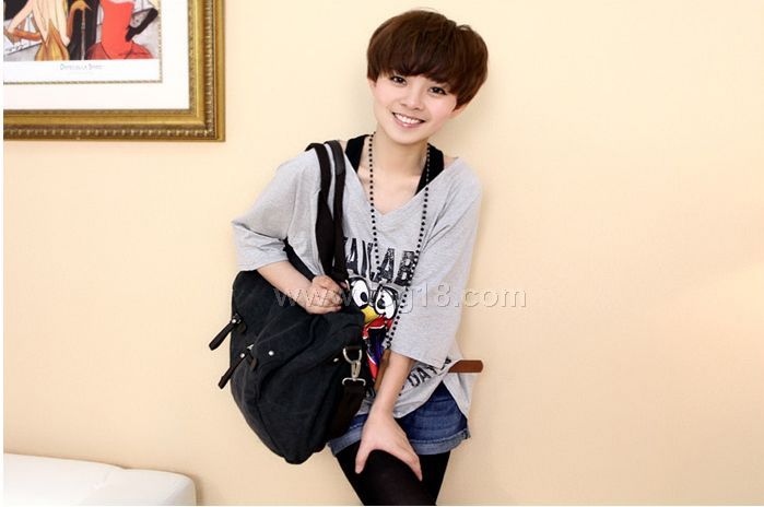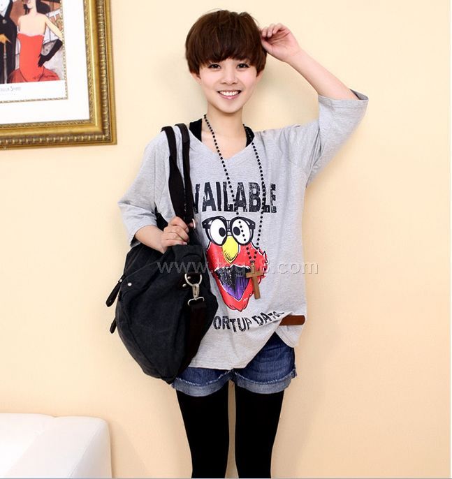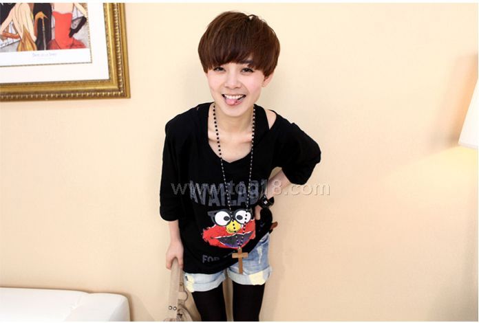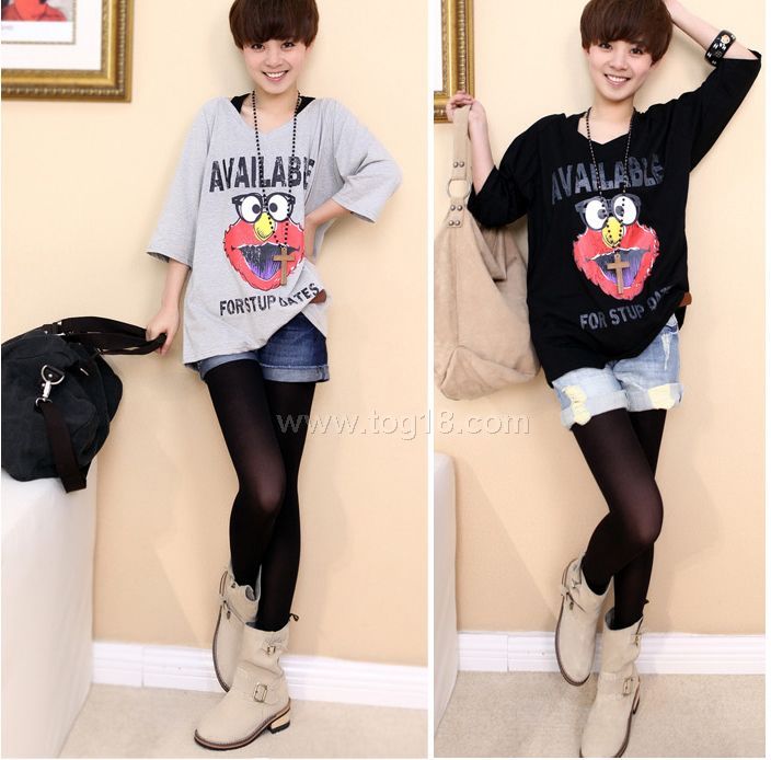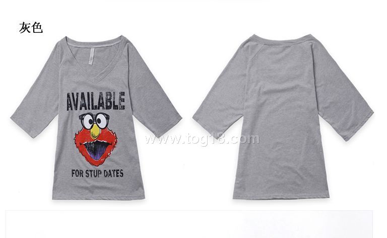休閒卡通印花寬鬆休閒中袖V領T恤