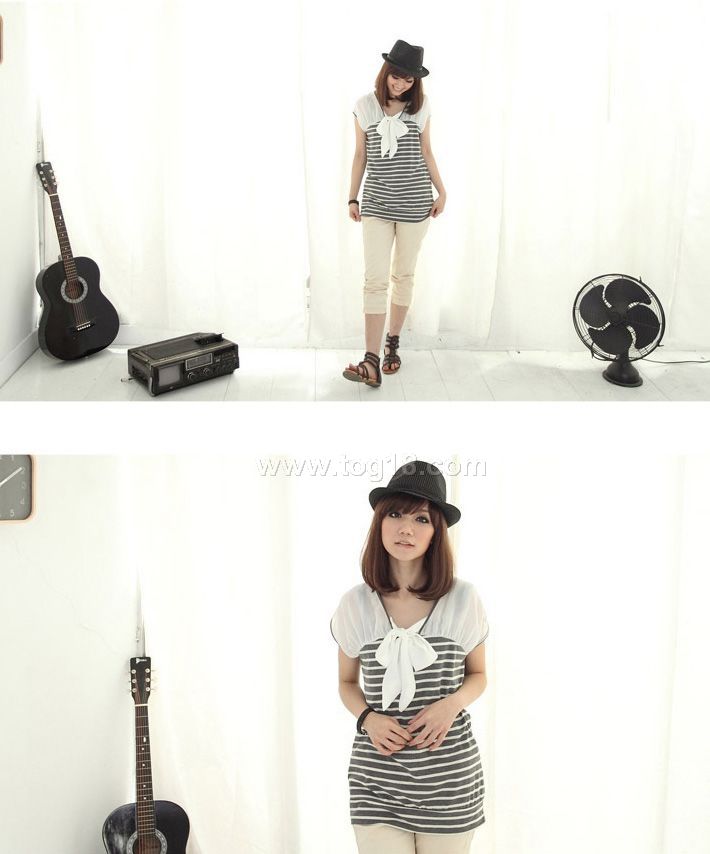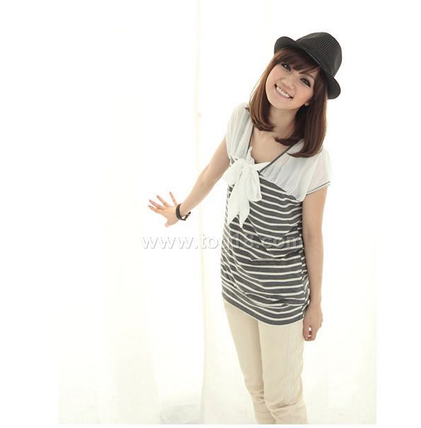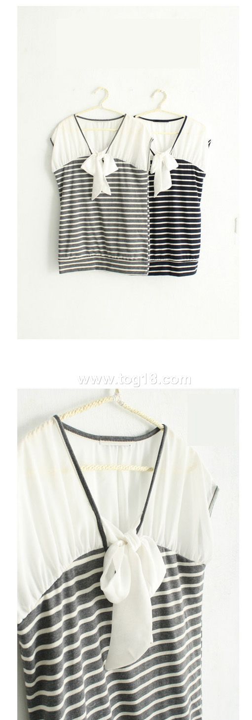 雪紡蝶結條紋上衣