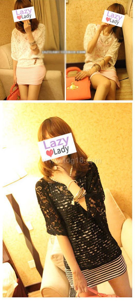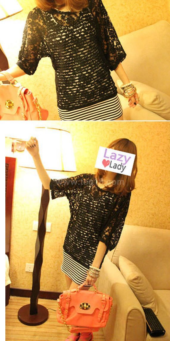 精美蕾絲衫兩件套鏤空蝙蝠衫
