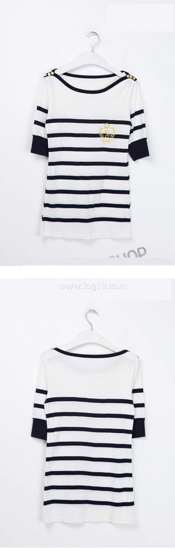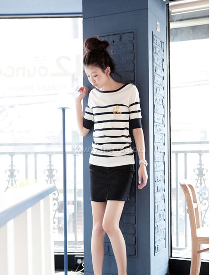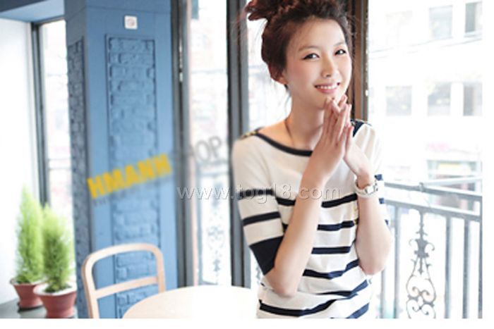 超人氣春夏秋款淑女條紋個性氣質百搭中袖T恤
