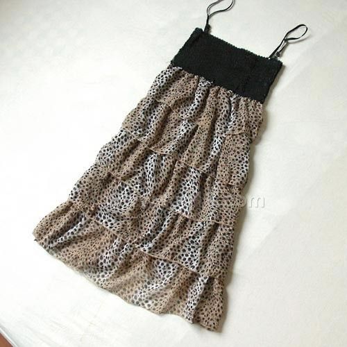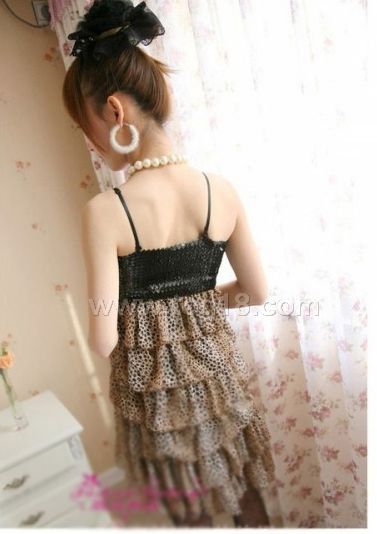 層層豹紋亮片裹胸裙吊帶裙連衣裙 咖啡色