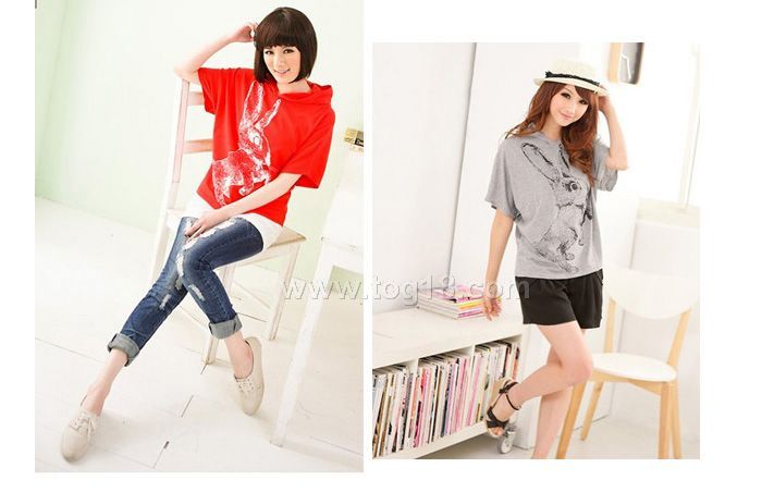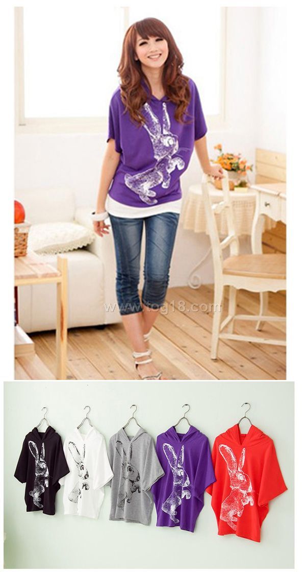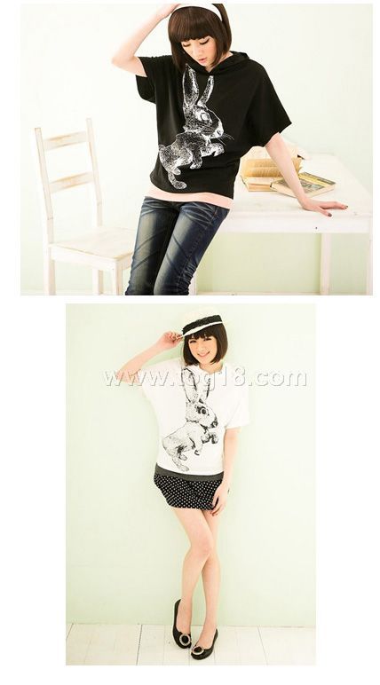 休閒前面印花可愛兔子