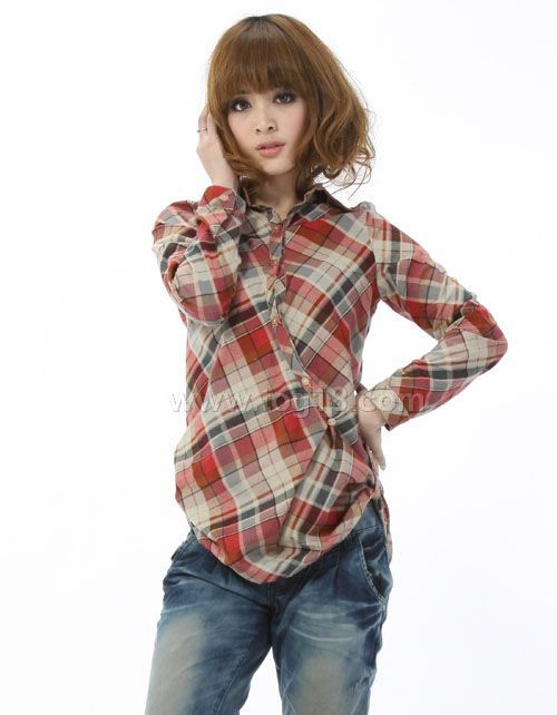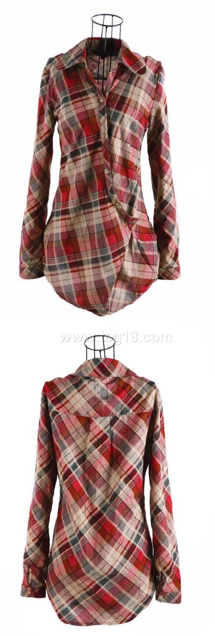 中長款 長袖休閒格子 全棉襯衫