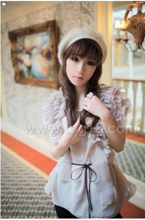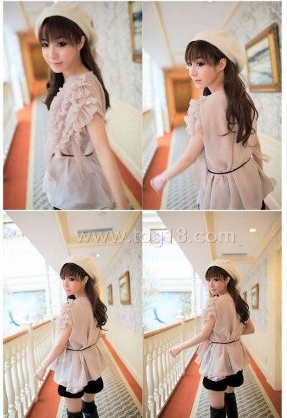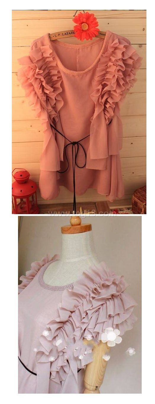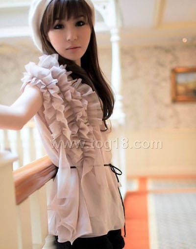 甜美多層層木耳邊背心繫帶收腰雪紡衫上衣T恤