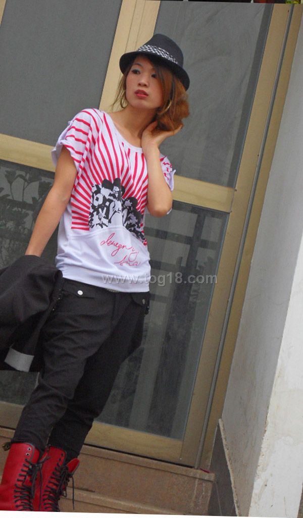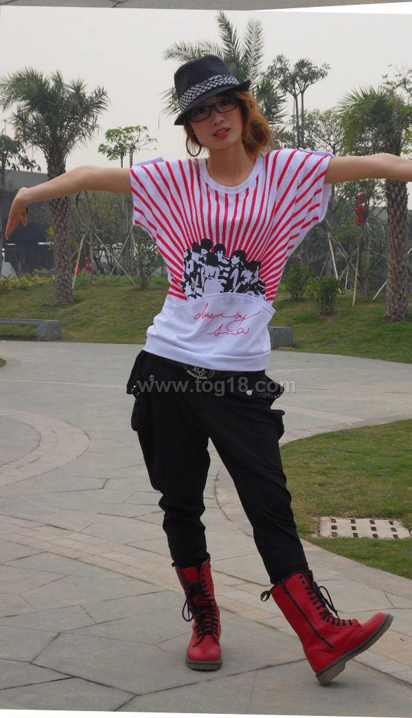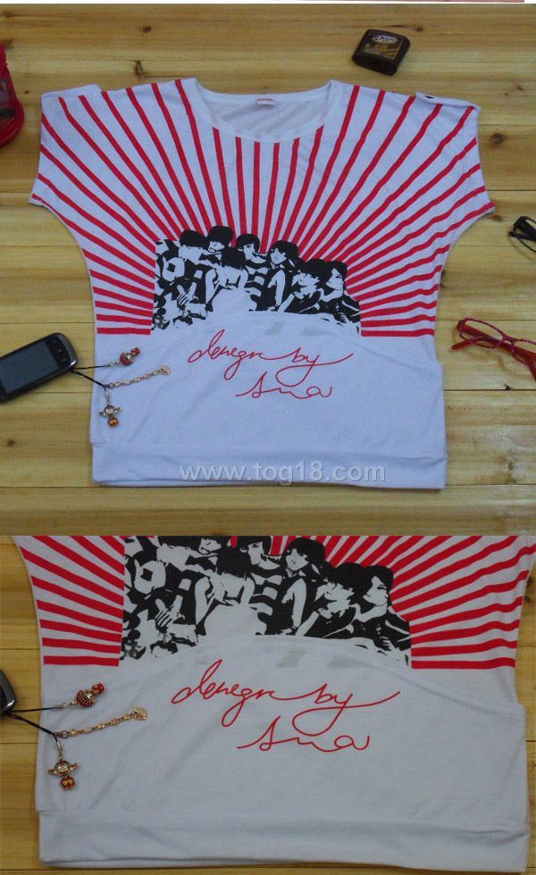 韓版瑞麗百搭蝙蝠袖個性印花T恤