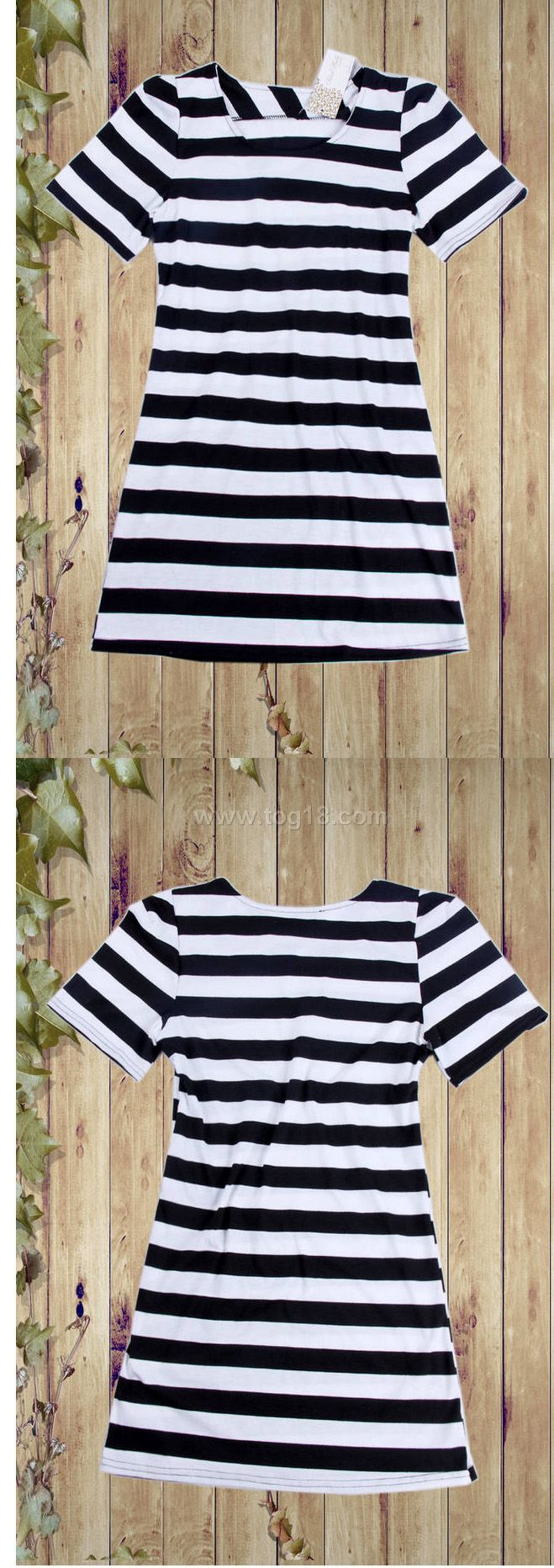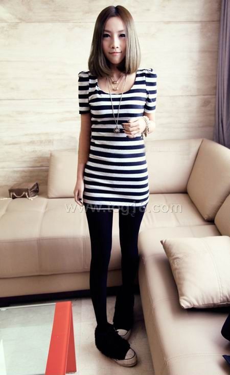 經典黑白條紋 橫條連衣長T(實拍)