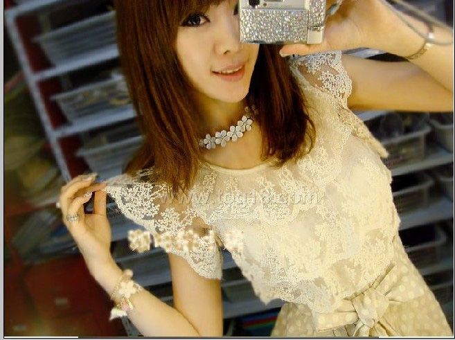 上面蕾絲 是米白色的 下面顏色和圖片一樣的哦