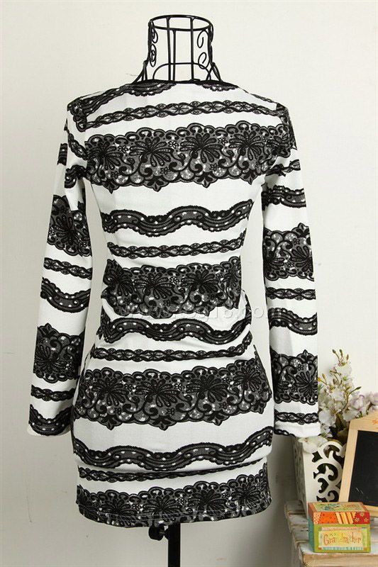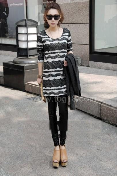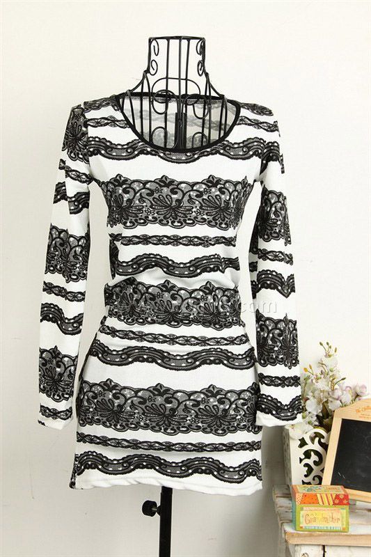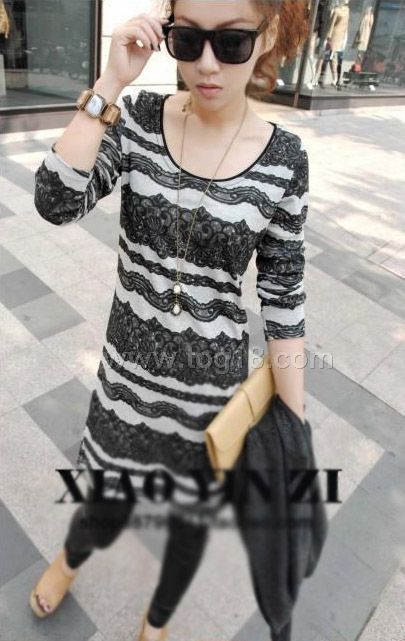 蕾絲紋打底連衣裙 韓版長款連身裙