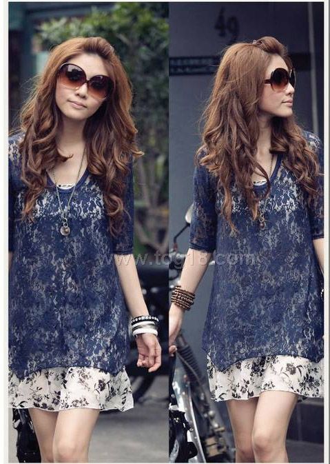 新款春裝女雪紡長背心裙不規則蕾絲圓領兩件套打底連衣裙