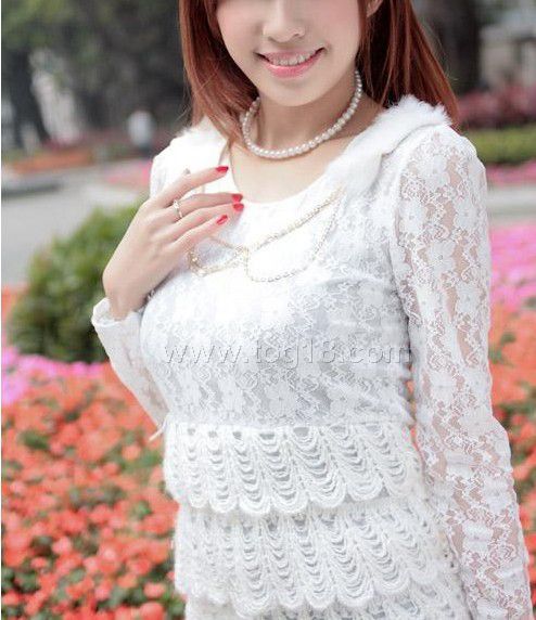 超仙 蕾絲拼接裙 帶兔毛