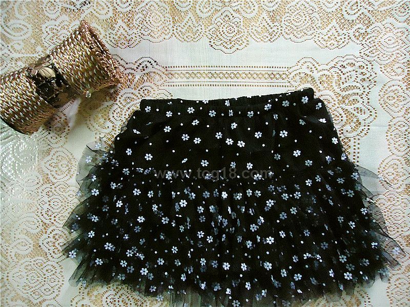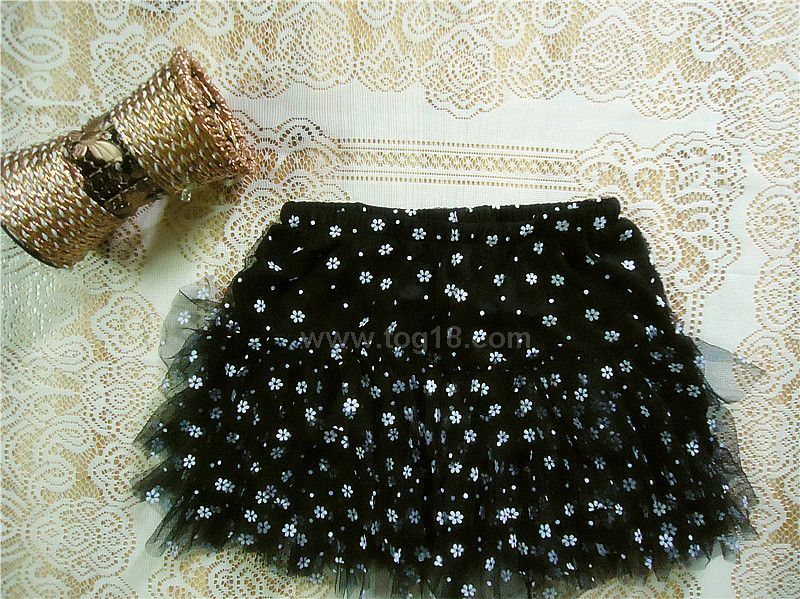 春季新款 黑底白花 甜美可愛短裙