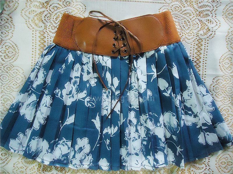 春季熱銷 韓版帶腰帶百褶牛仔裙